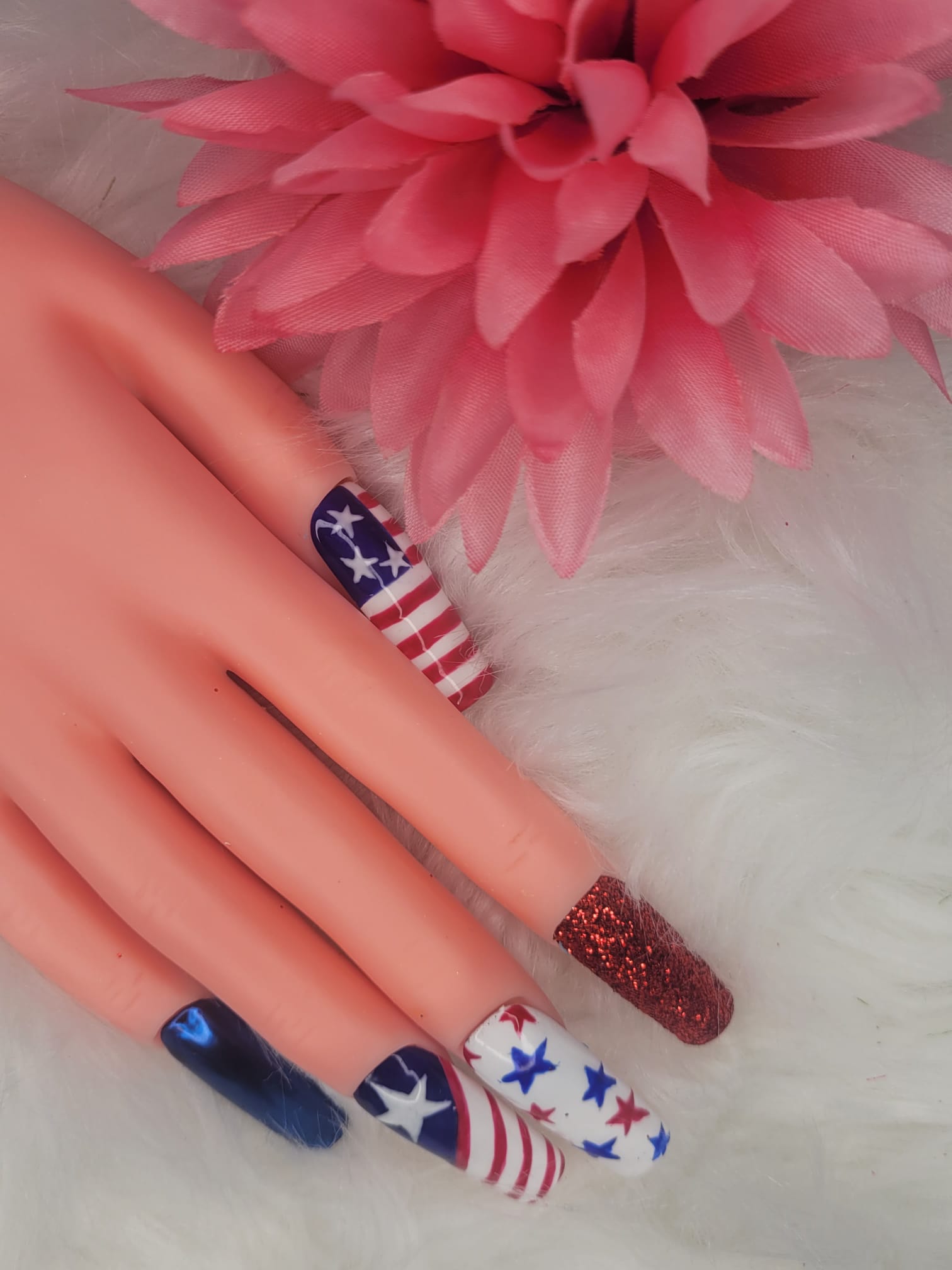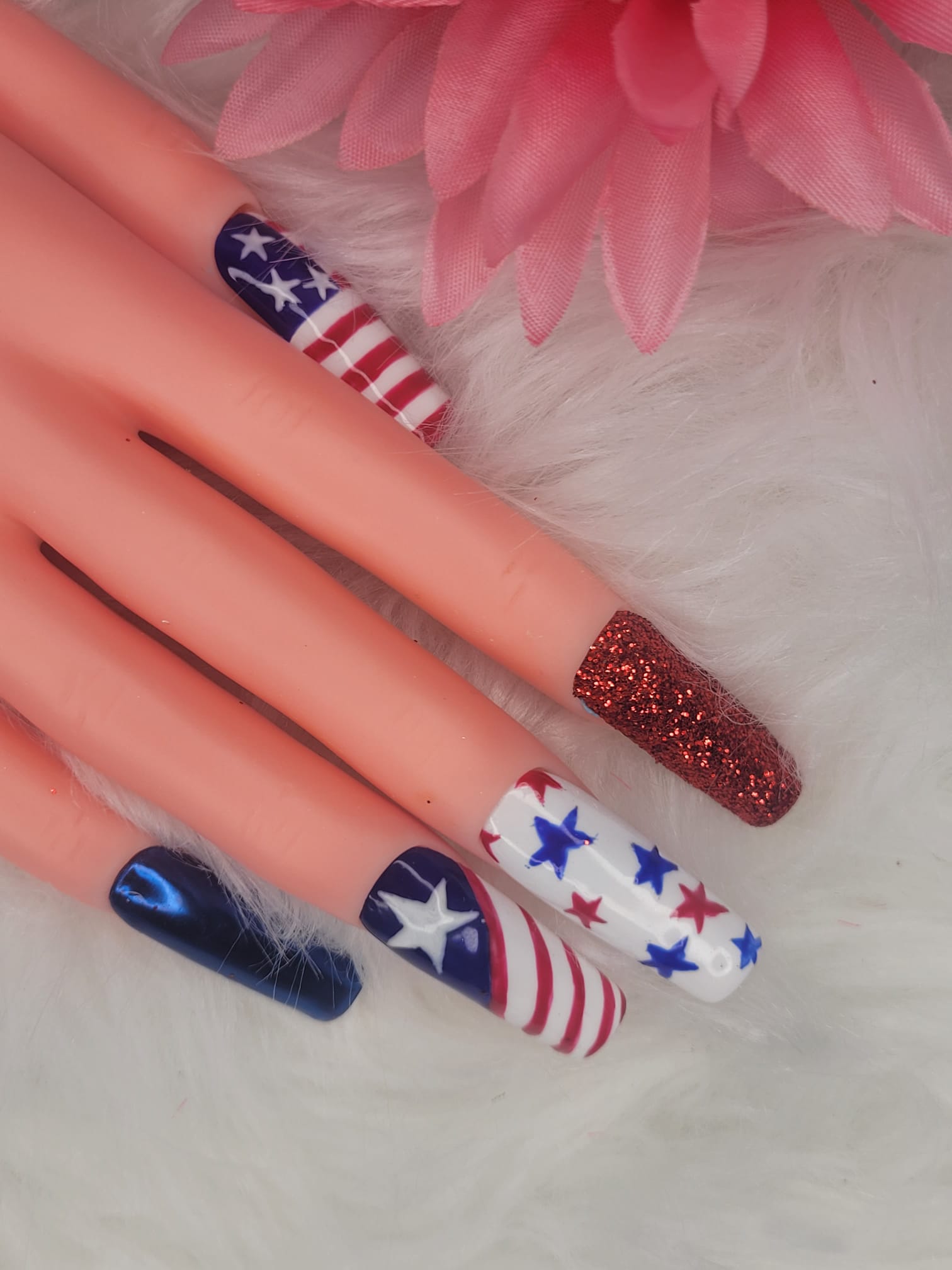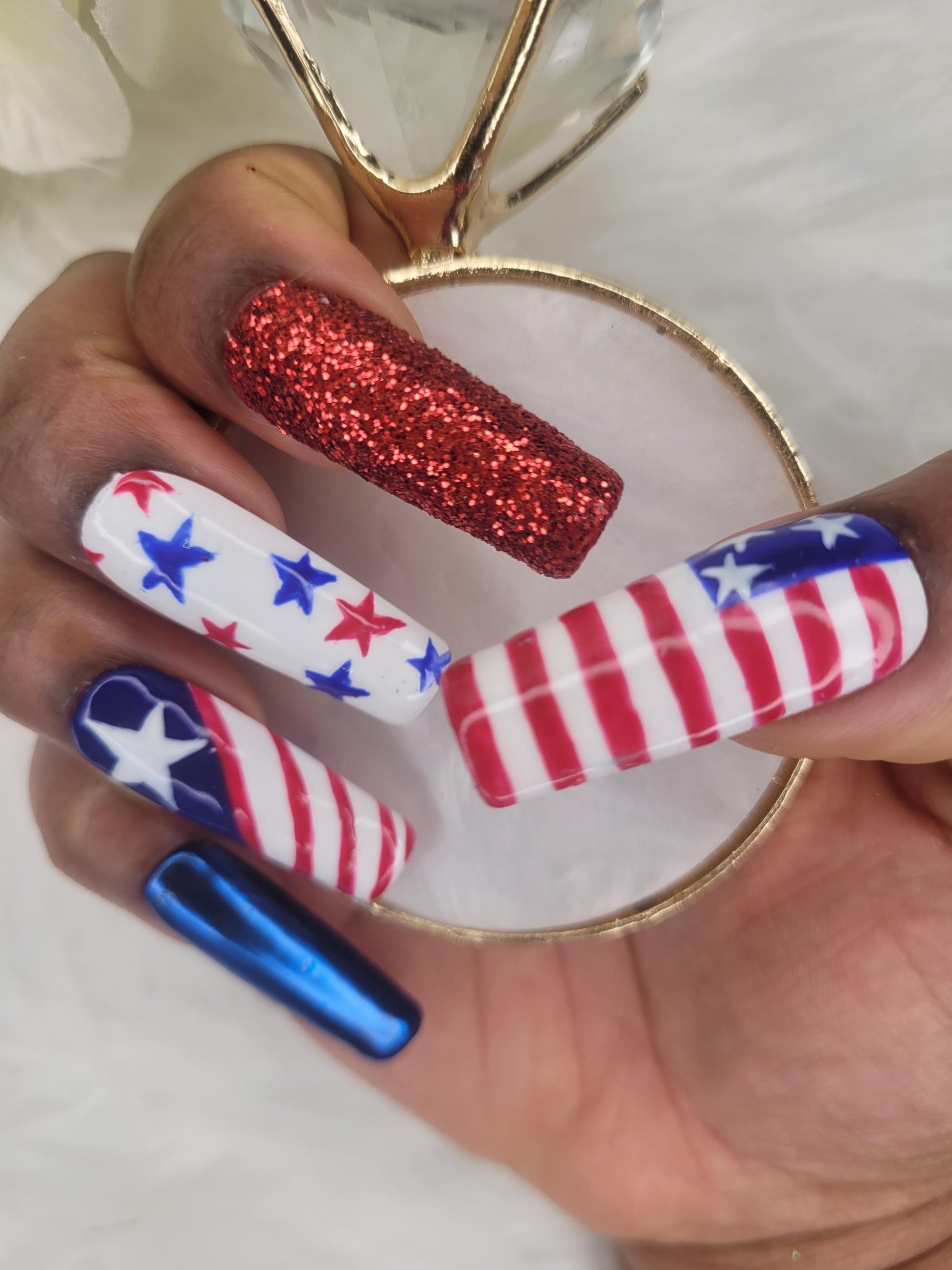Celebrate Independence Day in style with our 4th of July Press-On Nails! This dazzling set features bold red, white, and blue designs, glitter accents, and star-spangled details for the ultimate patriotic manicure. Perfect for BBQs, fireworks, or showing off your USA pride all summer long!