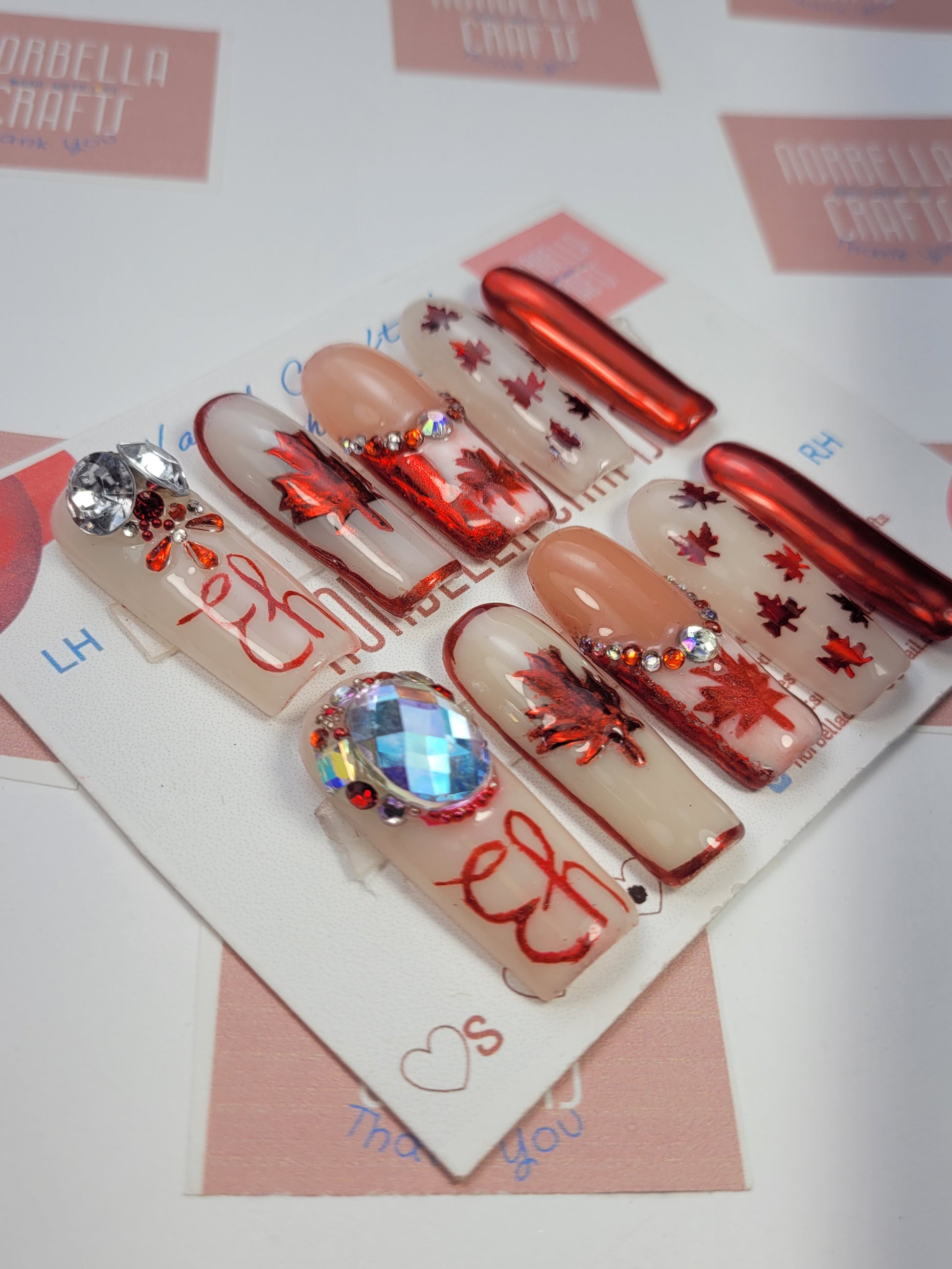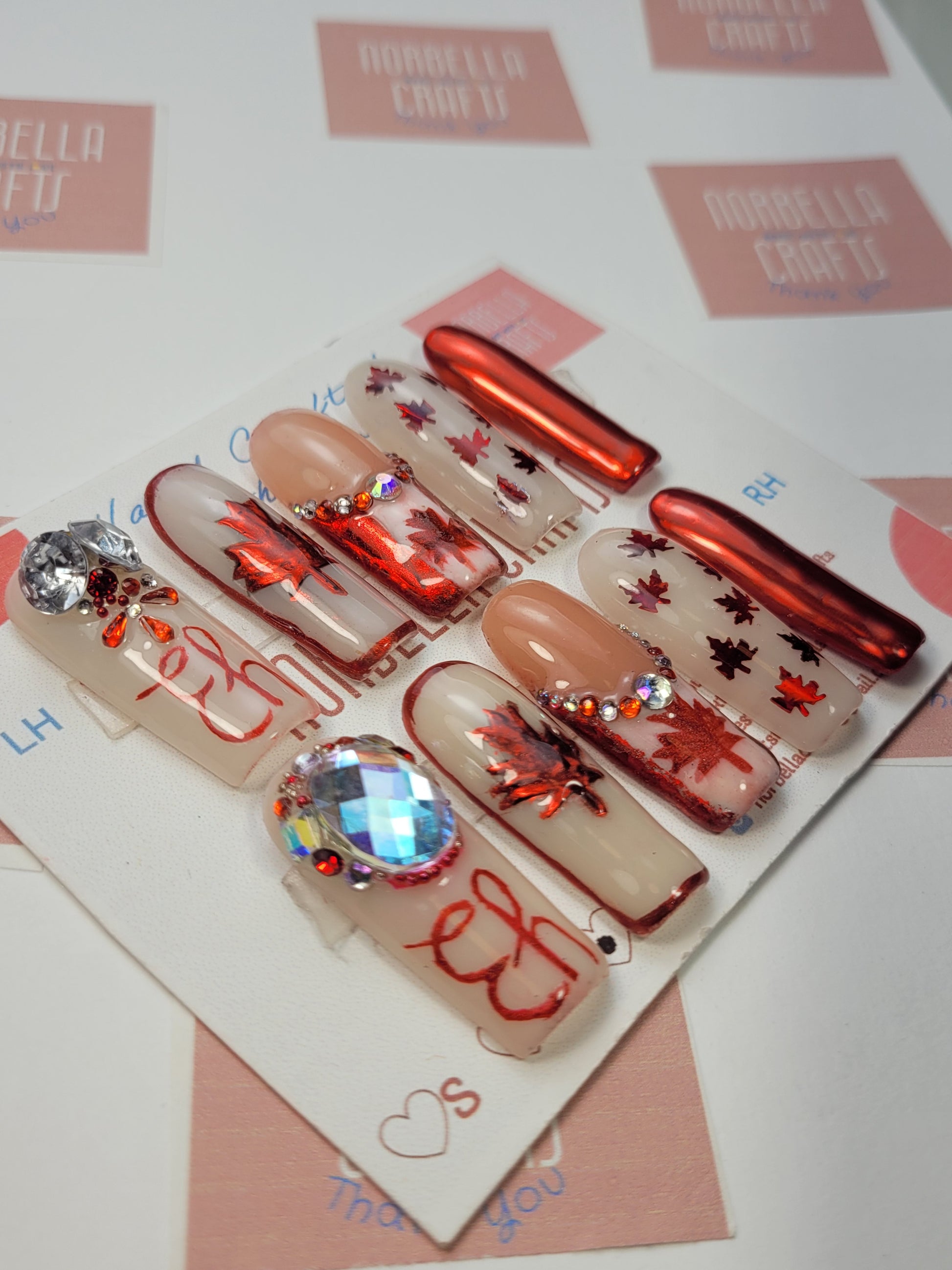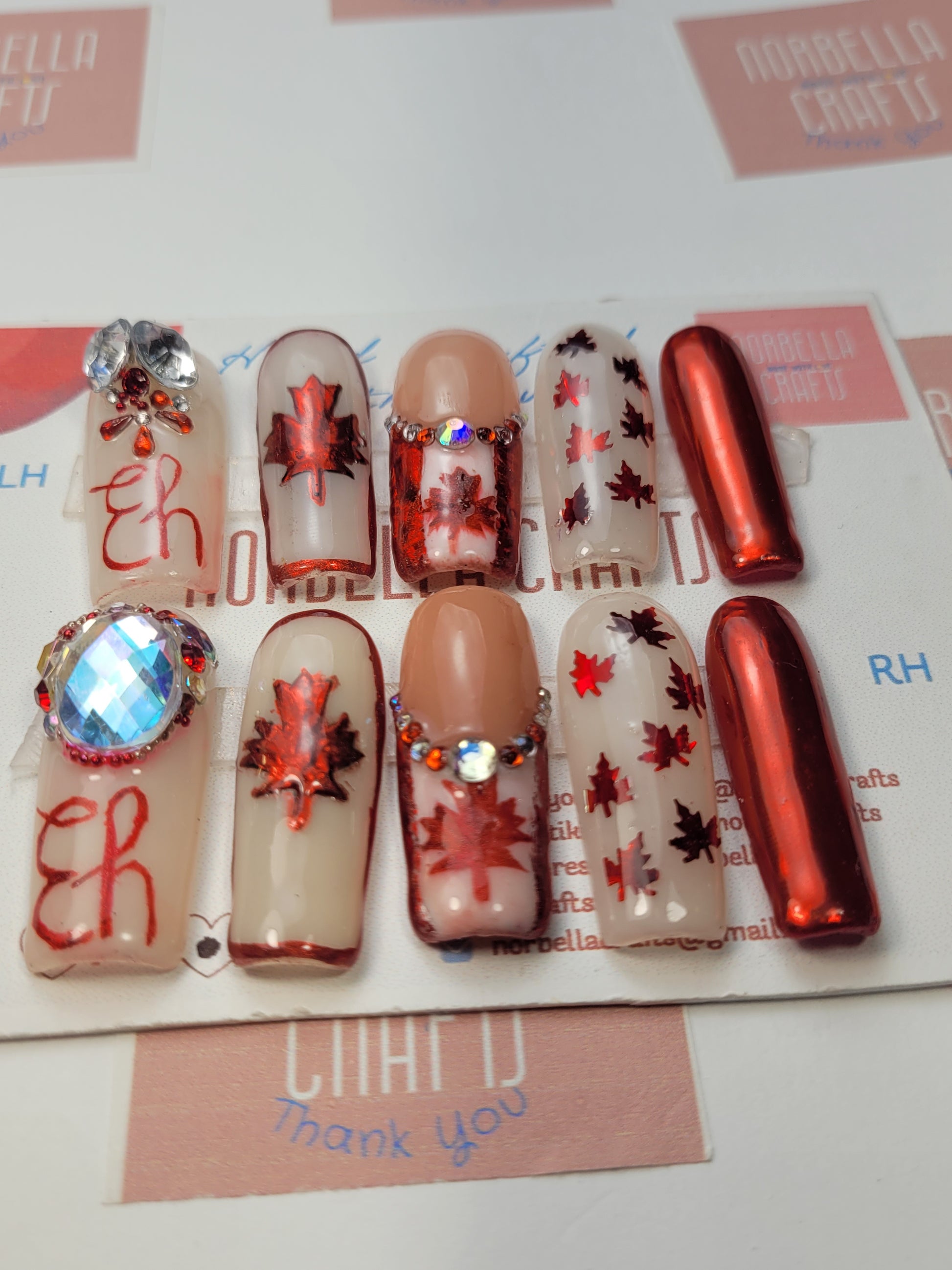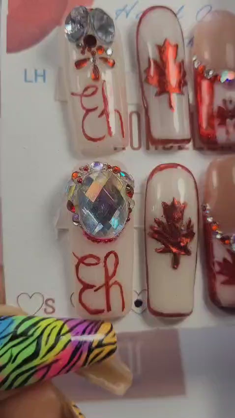 Show your Canadian pride with our stunning Canada Day Press-On Nail Set! Perfect for festivals, parties, or everyday wear, these high-quality press-on nails feature bold red and white designs, maple leaf accents, and sparkling glitter details.